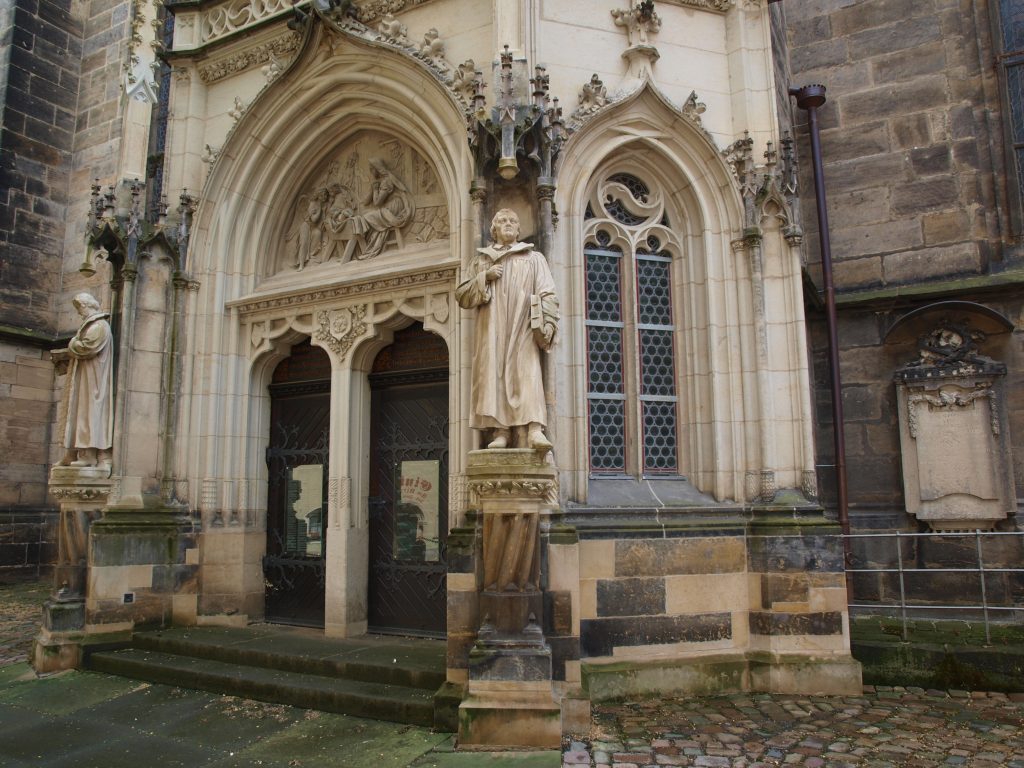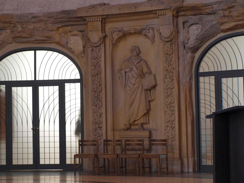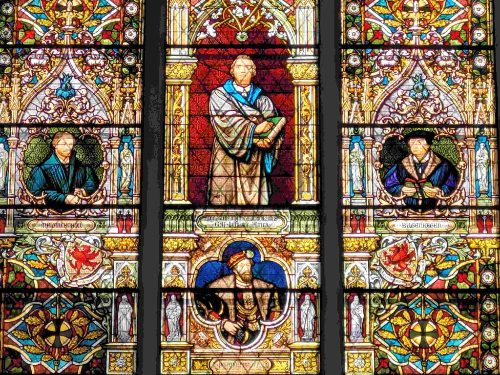 Huldigungen Luthers mit Denkmälern, Reliefs und Fensterbildern